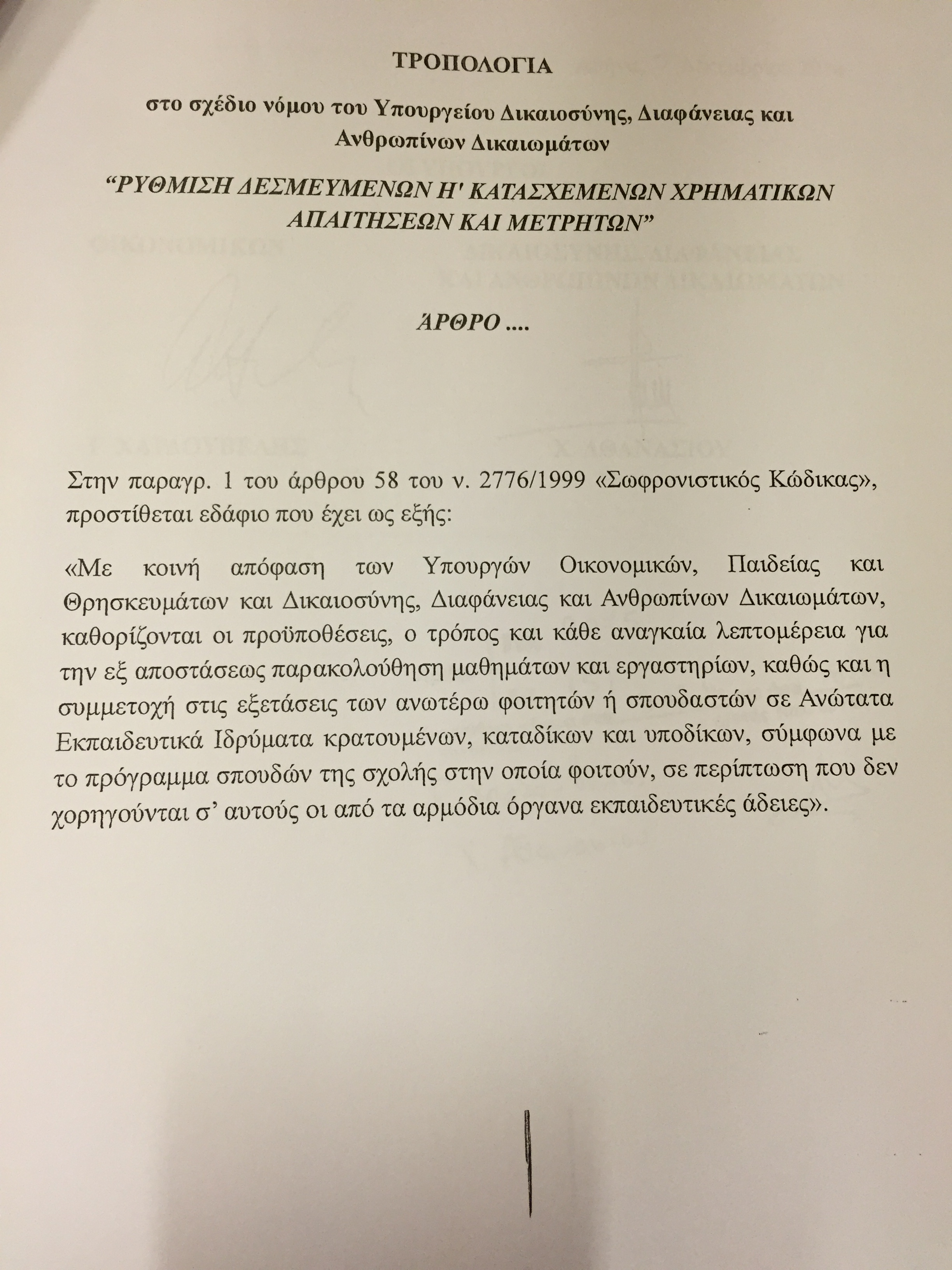 Προβλέπεται επίσης στον προϋπολογισμό «ενδεχόμενη δαπάνη από την κάλυψη του κόστους που συνεπάγεται η εξ αποστάσεως παρακολούθηση μαθημάτων και εργαστηρίων καθώς και η συμμετοχή στις εξετάσεις φοιτητών κρατουμένων, καταδίκων και υποδίκων.